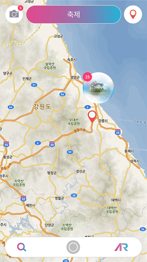 위치기반 사용자 사진을 통해 AR모드의 지도 화면을 통해 실시간으로 장소탐색 가능
